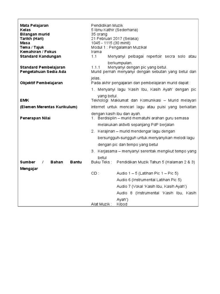 Related : Pendidikan Muzik Tahun 5 - Rancangan pelajaran harian pendidikan muzik thn 5 pl lee..